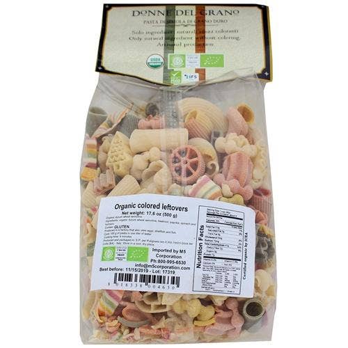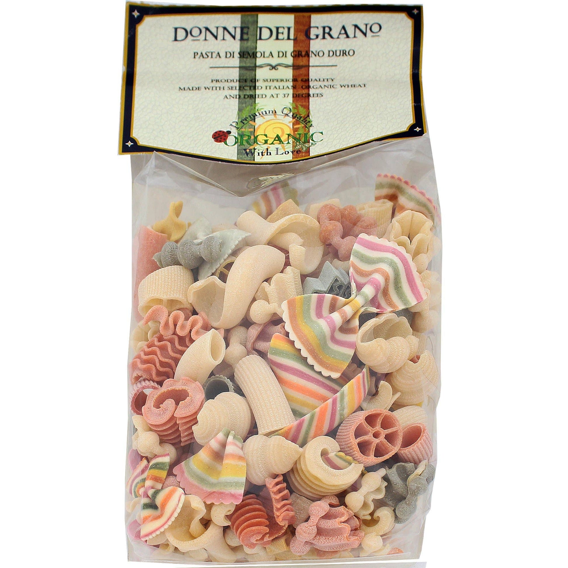 This beautiful colored Monnezza Verdure (Colored Leftovers) pasta from Donne Del Grano, is made from premium durham wheat. The amazing colors all come from natural ingredients: green spinach, golden turmeric, red paprika and beets that all combine to create a fantastic rainbow array of colors. Cooks in 10 minutes to achieve optimum flavor and aroma.
