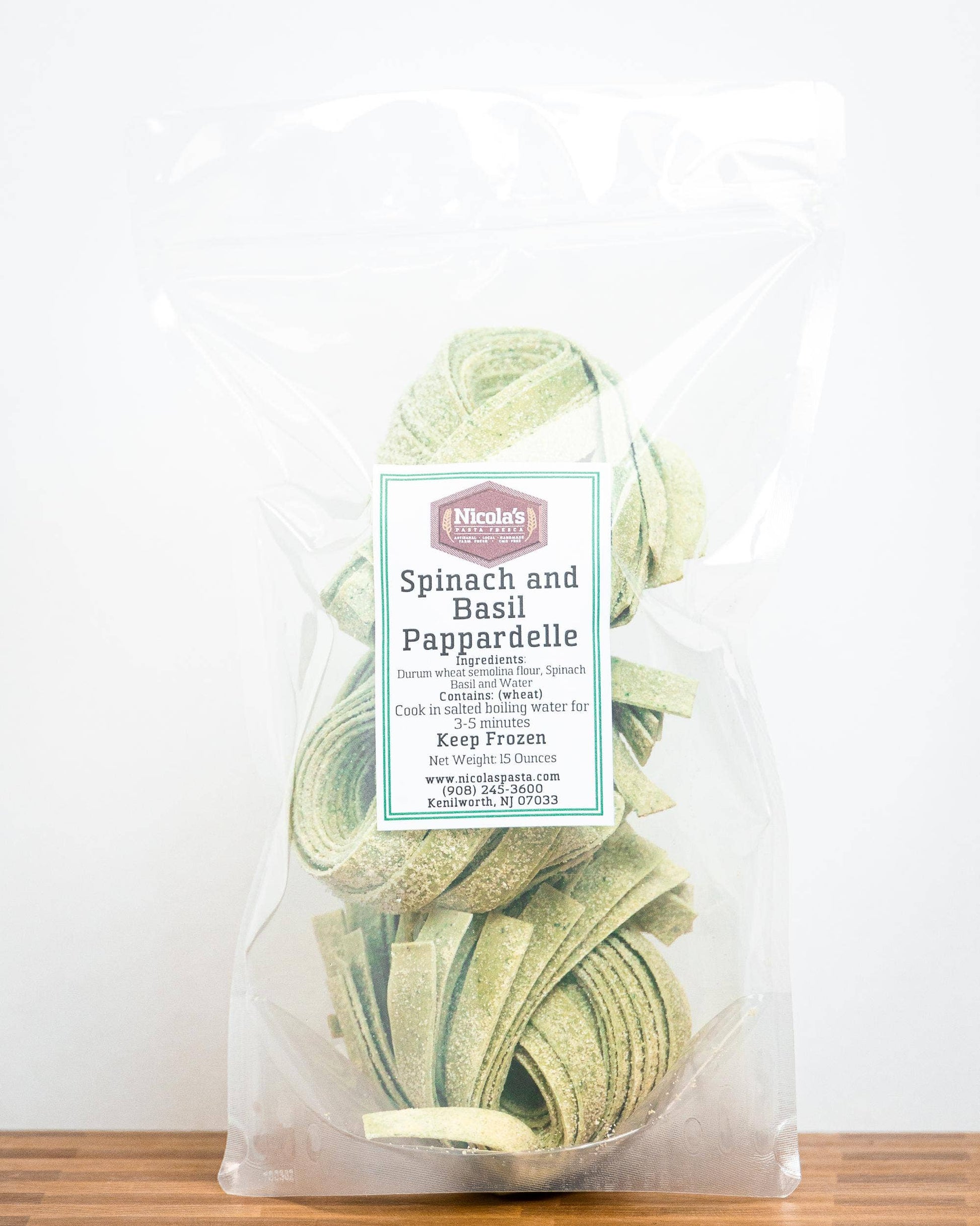 An absolute favorite for the foodie. Satisfy your cravings for classic Italian food with our freshly made Spinach and Basil Pappardelle Pasta. Made from scratch with premium ingredients sourced directly from Local Farmers and organic unbleached semolina flour imported directly from Italy. It’s made fresh to order and flash frozen to preserve freshness, without any preservatives. Perfect for any meal. Spinach and Basil Pappardelle is enjoyed by everyone including those who are lactose-intolerant.
