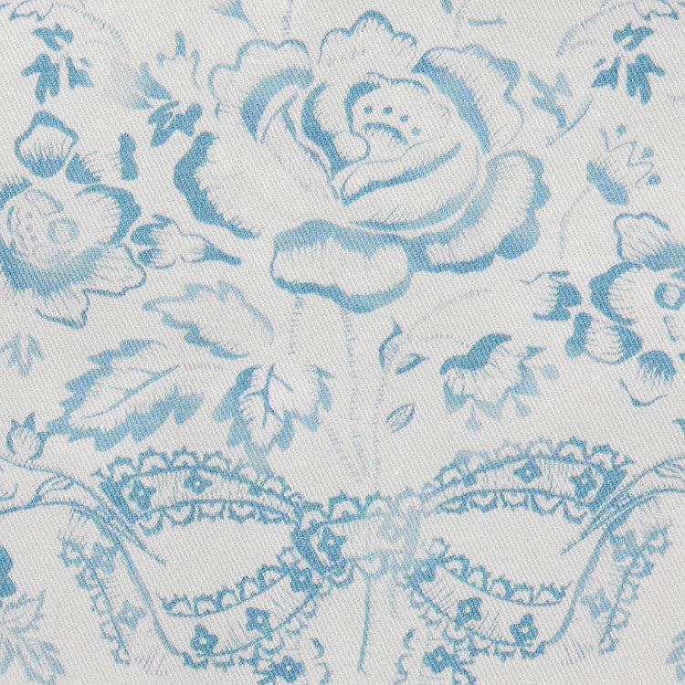 A dreamy toile print that evokes the French countryside, this serene blue smock features romantic florals, cherubs, and birds. Inspired by 19th-century French textiles, the print was lovingly designed in-house, featuring LoveShackFancy's bow motif woven throughout. Includes H&B's iconic signature touches — a towel loop, lap pockets, and criss-cross back straps for all-day comfort. Made in Los Angeles.